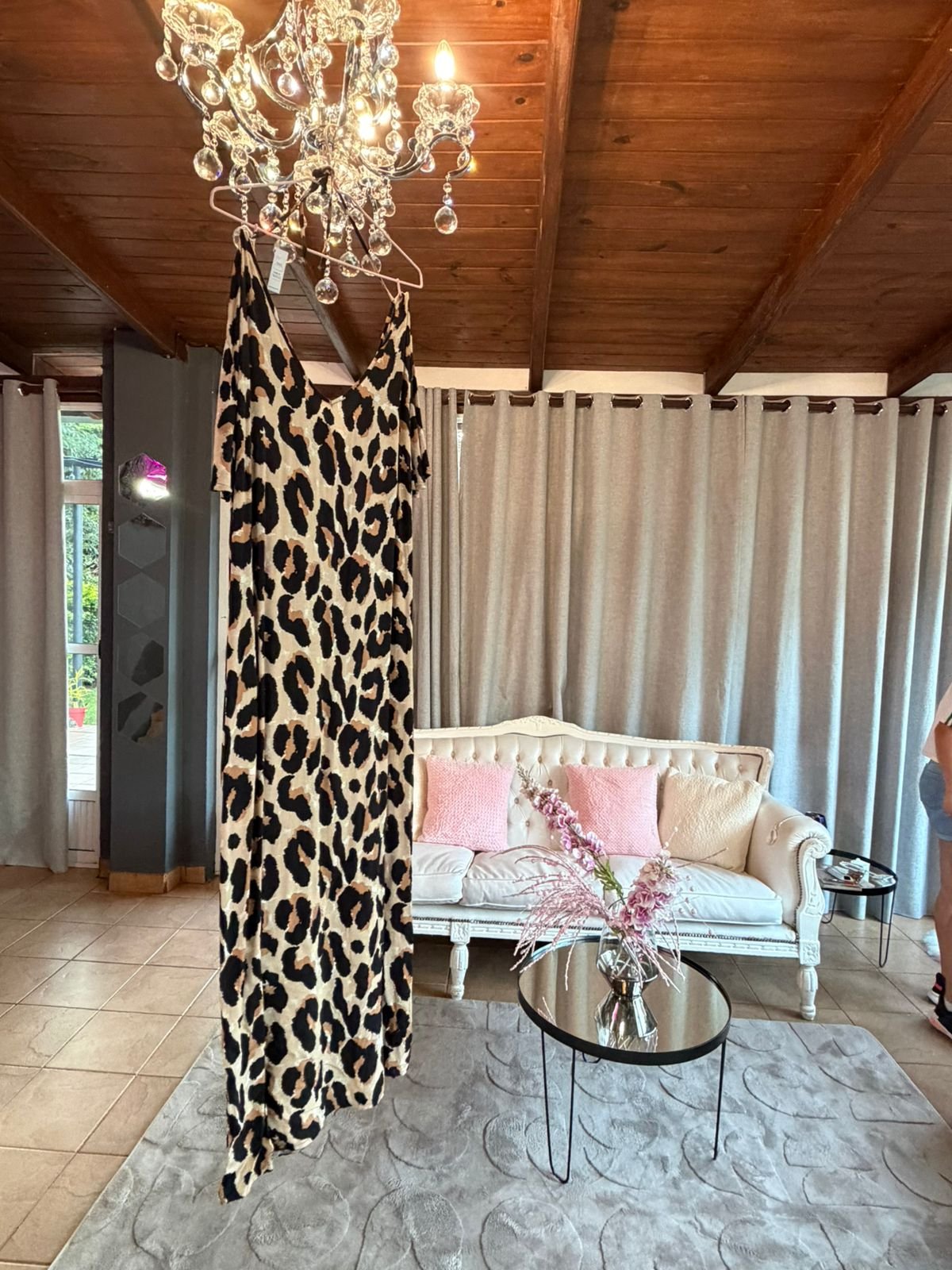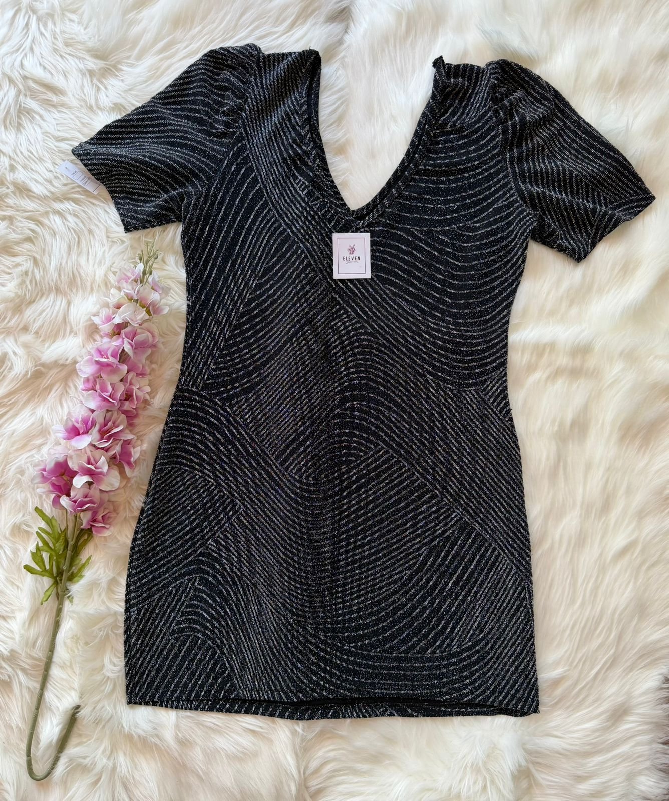 Vestido de Lurex Prenda de archivo seleccionada Excelente estado Fondo negro rayas plateadas