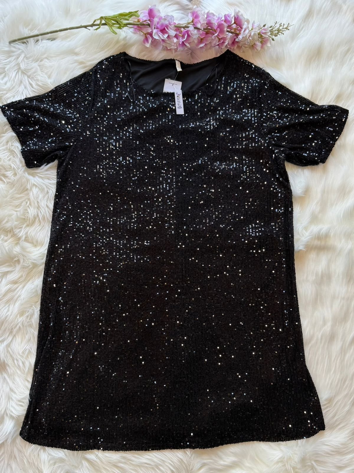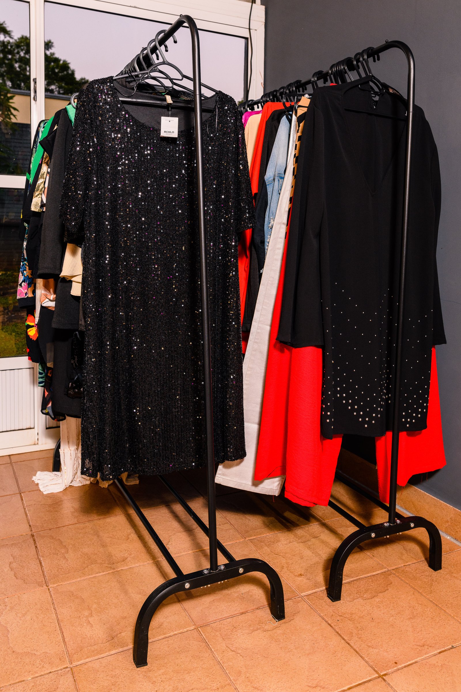 Vestido de Lurex Prenda de archivo seleccionada Excelente estado Fondo negro rayas plateadas